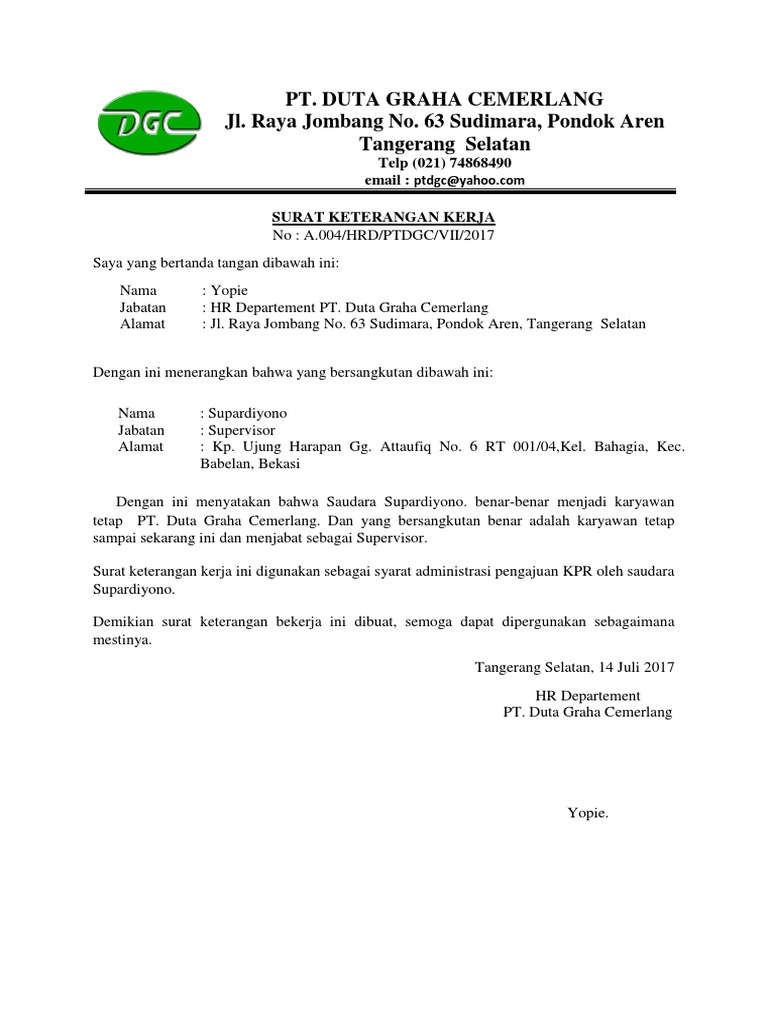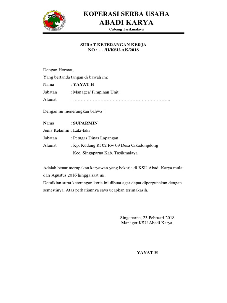Berbeda dengan surat lamaran kerja yang berfungsi untuk melamar pekerjaan. Berikut ini cuplikan contoh format surat keterangan kerja dari kelurahan/desa untuk tes pendamping desa (pld/pd/ta) tahun 2021 semoga penjelasan dan contoh format doc (word) dan pdf yang kami berikan dapat berguna dan membantu sobat desa semua yang membutuhkan. Contoh surat lamaran pekerjaan yang baik dan benar. Contoh template surat keterangan kerja untuk membuka rekening bank. Biasanya surat ini dibutuhkan dalam pengajuan pinjaman, pembelian rumah dengan sistem angsuran dan lain sebagainya. Untuk lebih jelasnya mengenai contoh surat. Tips membuat surat keterangan kerja yang baik dan benar. Biasanya skk ini dibuat oleh karyawan yang terikat buat kalian yang ingin tahu cara mudah membuat kop surat di ms. Pihak perusahaan langsung menyatakan karyawan yang diterangkan. Ini dia contoh surat lamaran kerja doc yang memiliki sistematika paling tepat. Setidaknya dibagian isi surat harus mempunyai nama karyawan, jabatan karyawan dan nomor identitas diri karyawan tersebut. Contoh surat keterangan kerja ini bisa dijadikan referensi. Surat keterangan kerja yang benar dan baik adalah memiliki bagian kepala surat, perihal surat, isi surat dan penutup surat.
